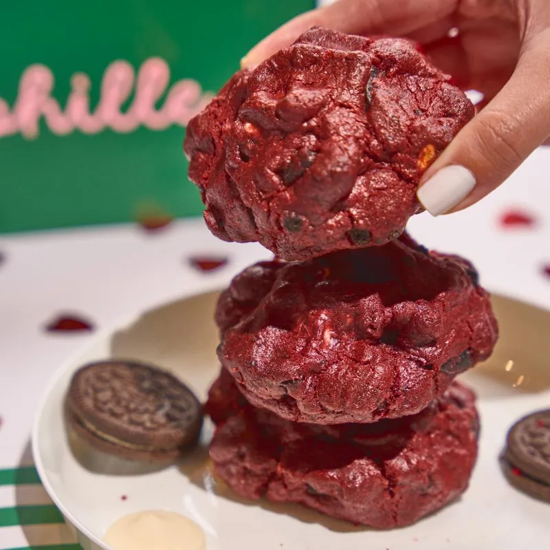 Galleta de masa de vainilla, rellena de caramelo, trozos de pecans y terminada con escamas de sal.